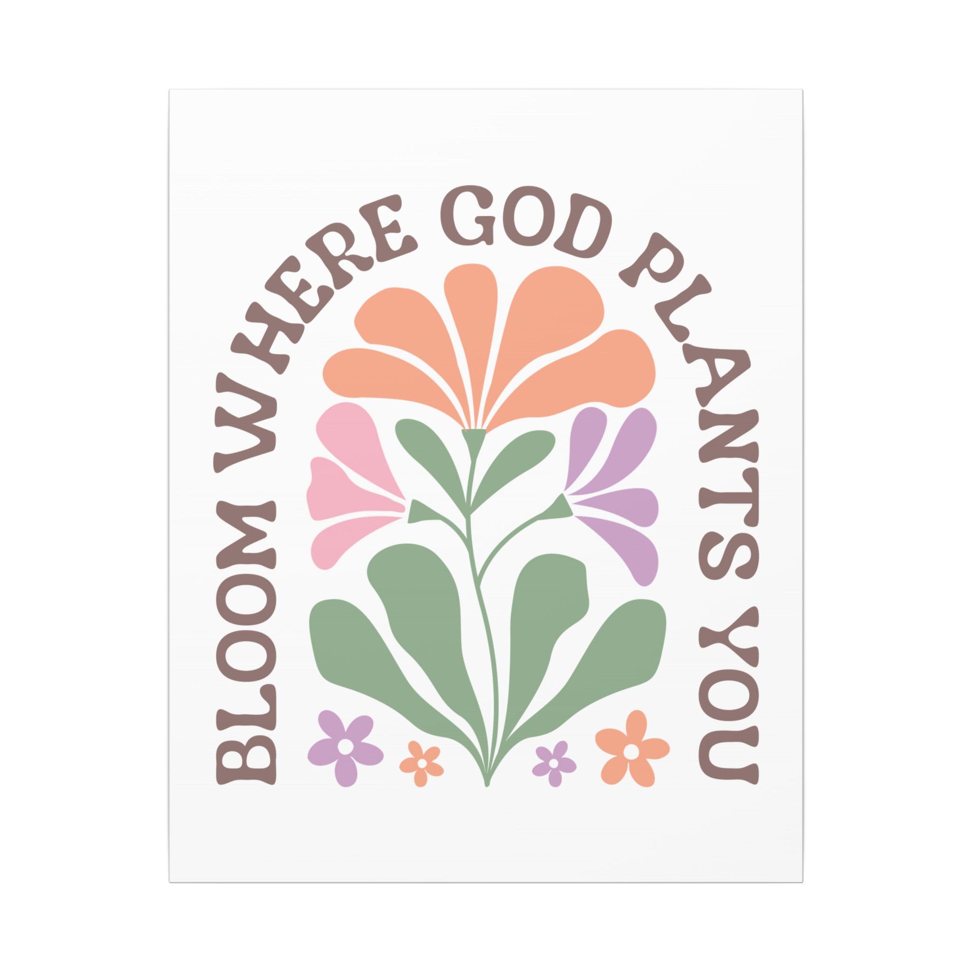 Brighten up your space with our stunning matte canvas prints, designed to inspire and uplift. Featuring the phrase 'Bloom Where God Plants You,' this artwork radiates positivity and encourages viewers to embrace their journey. Perfect for any room in your home, it infuses a warm, inviting atmosphere that resonates with anyone who appreciates personal growth and spirituality. Ideal for gift-giving, this piece suits various occasions such as housewarmings, birthdays, or as a thoughtful addition to your own decor. Its vibrant colors and motivational message make it a wonderful choice for family, friends, or even yourself, especially during celebrations like Easter or as a reminder throughout the year.
