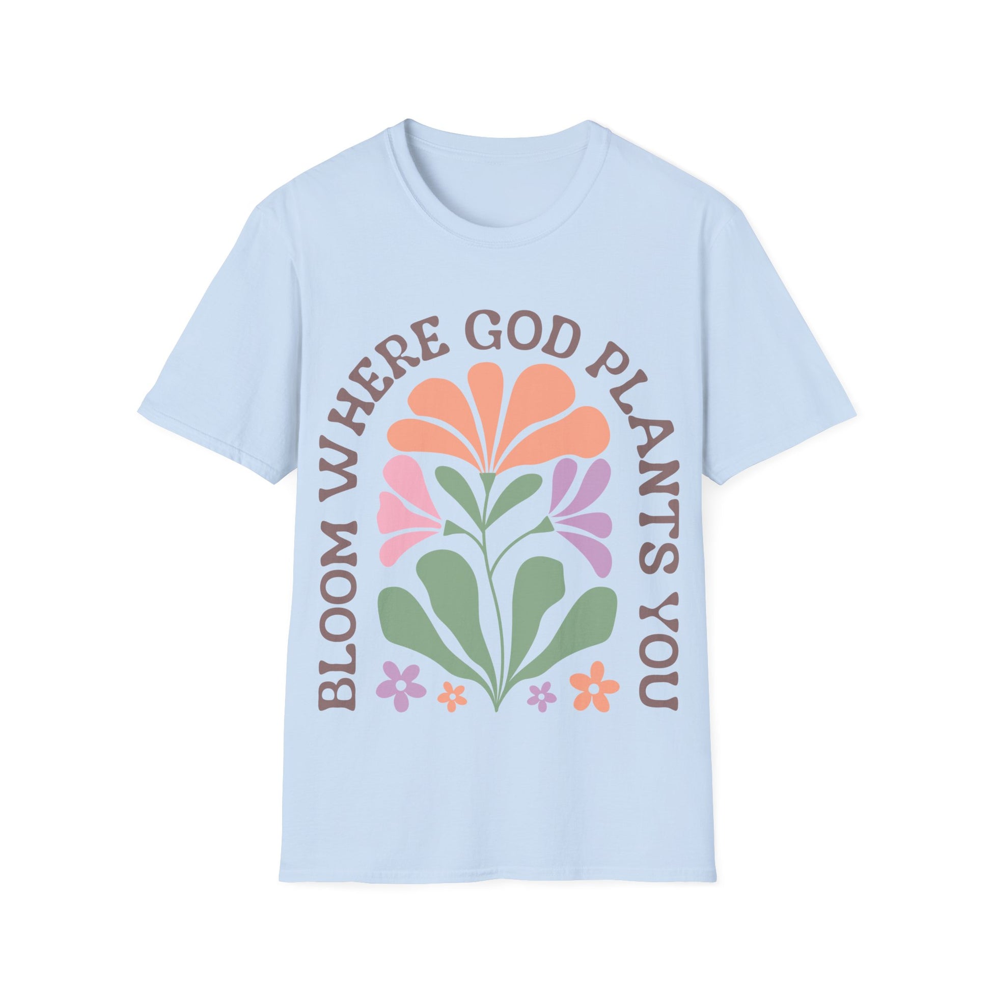 Introducing a cheerful Unisex Softstyle T-Shirt that radiates positivity with its beautiful floral design and uplifting message. Feel the breezy comfort of the lightweight, ring-spun cotton fabric that drapes effortlessly on your body, making it perfect for everyday wear. This versatile tee fits seamlessly into any wardrobe, from casual outings to semi-formal gatherings. Perfect for nature lovers, aspiring gardeners, and anyone who enjoys a little inspiration in their attire. This t-shirt is a great choice for springtime celebrations, birthdays, or as a thoughtful gift for loved ones looking to express their individuality. Celebrate life's moments and bloom where you're planted with style!