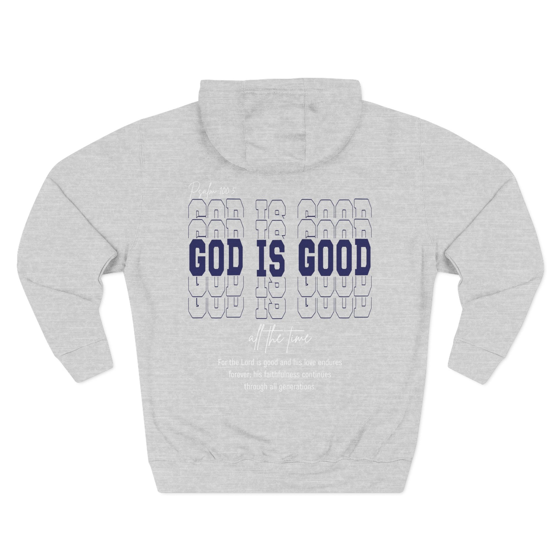 Faith Inspired Three-Panel Fleece Hoodie - "God is Good"