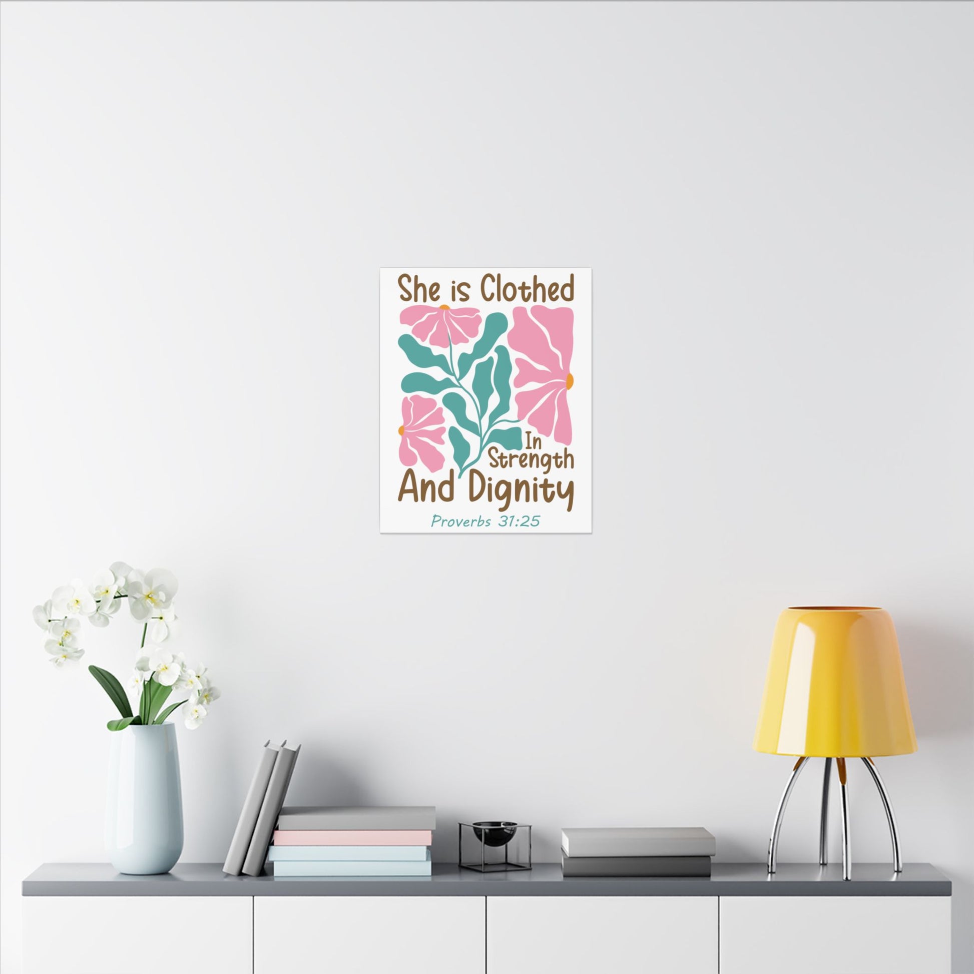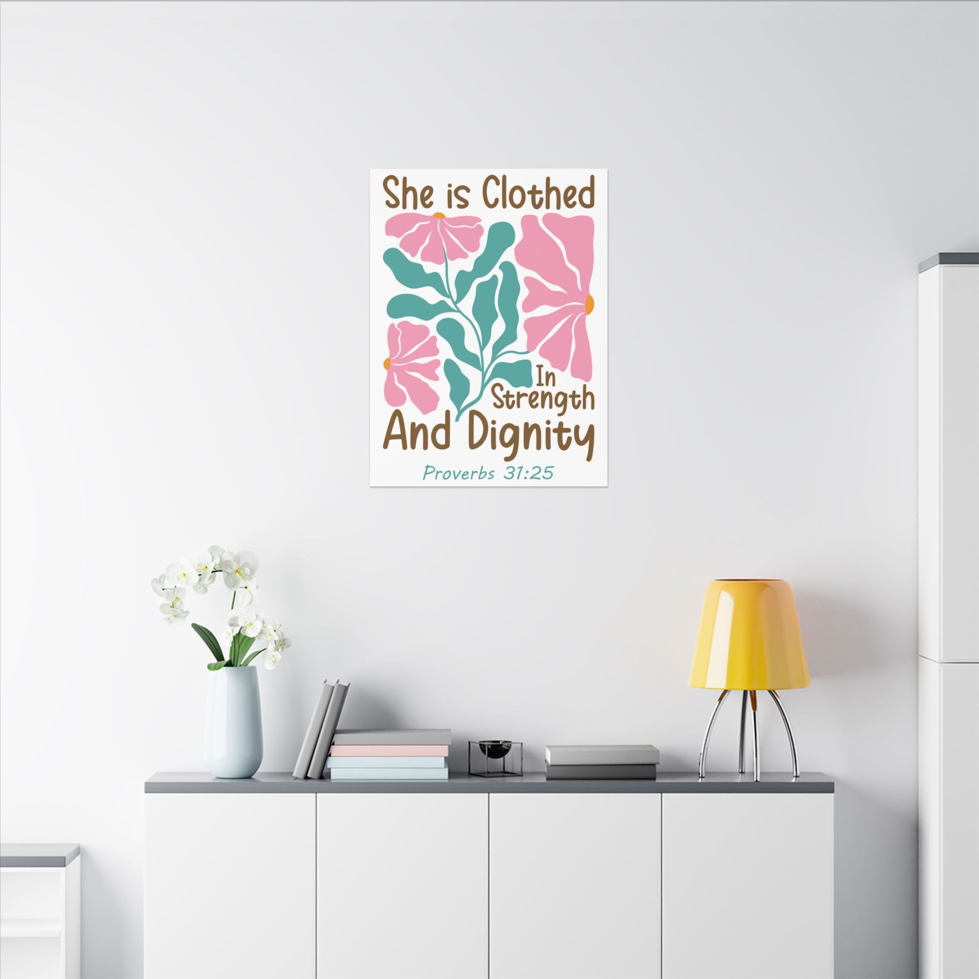 Transform your home with this vibrant Matte Canvas art piece that radiates positivity and strength. Featuring a beautiful floral design accompanied by the uplifting Proverbs 31:25, this canvas evokes a sense of empowerment and grace, making it an ideal addition to any space. Perfect for women who appreciate inspirational art, this piece enhances living rooms, bedrooms, or office spaces, spreading messages of strength and dignity. It makes for a thoughtful gift for birthdays, graduations, or as a meaningful gesture of encouragement on International Women's Day or Mother's Day. Let this exquisite canvas inspire you and those around you!